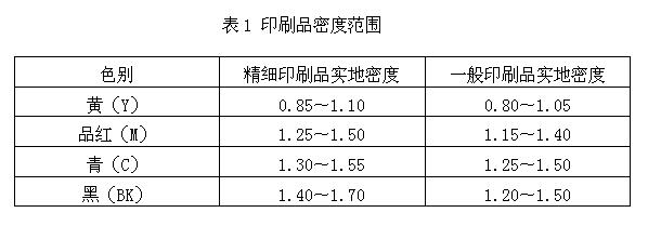 4.6.1 同批產品不同印張的實地密度允許誤差為:青(C)、品紅(M)≤0.15;黑(B)≤0.20;黃(Y)≤0.10。